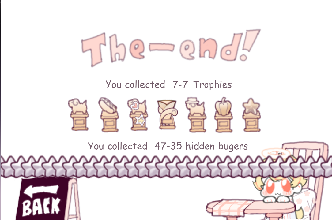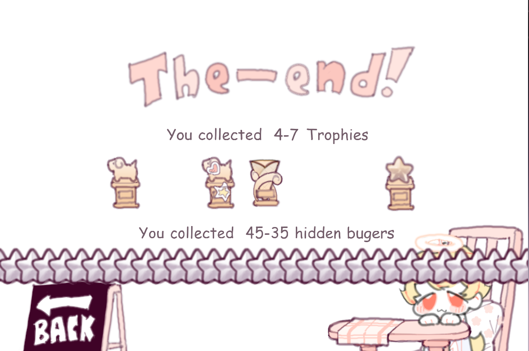 This game was super fun! I loved finding the secret burgers. I had an idea of one where you have to stack a certain amount of plates in front of him before he eats them. maybe it could be called dishwasher or something? I also love how you keep adding more secret burgers!!